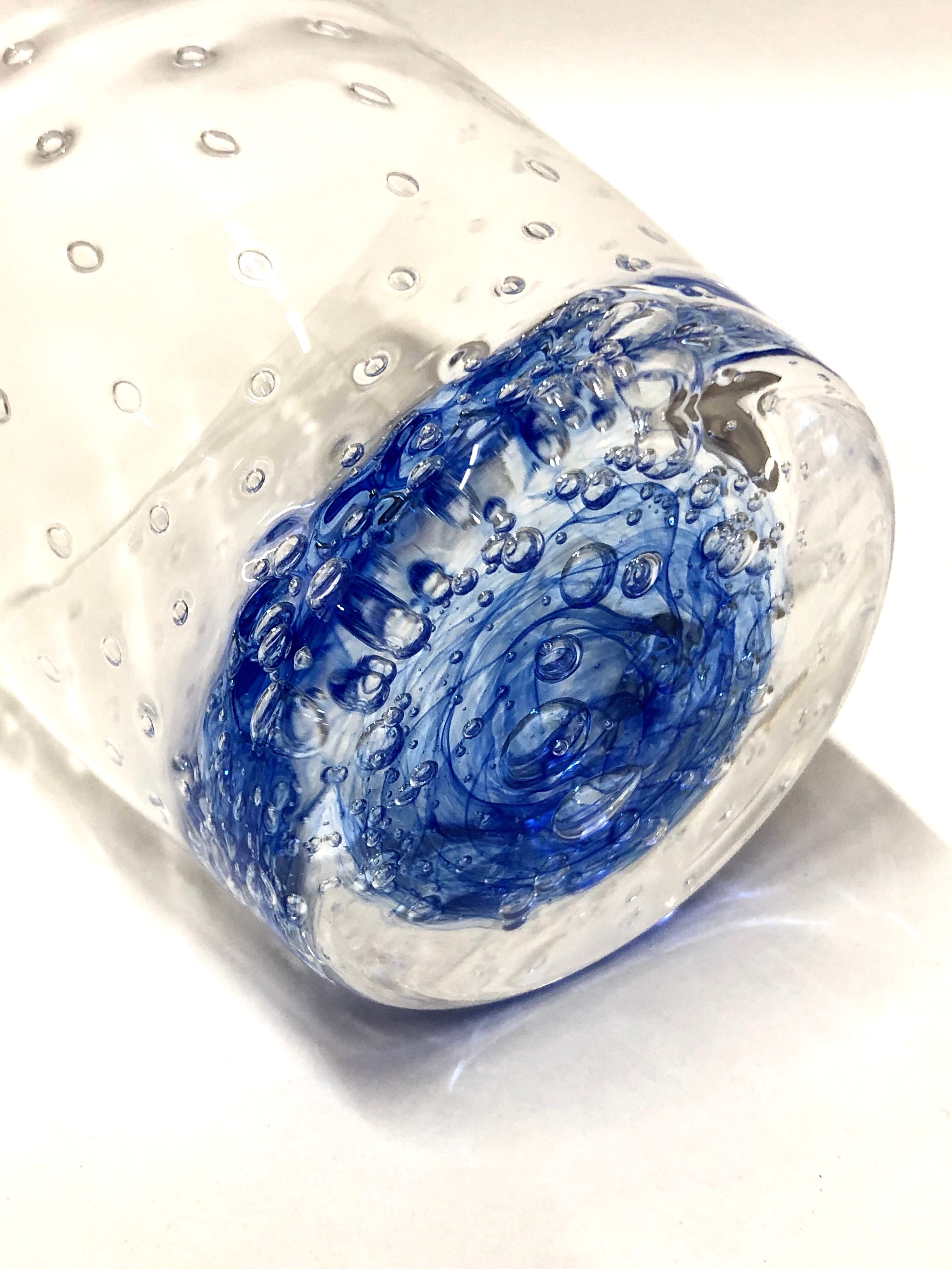 全体的に規則的な気泡と厚めに作ったそこの部分に不規則な大きさと形の気泡が入ったロックグラスです。